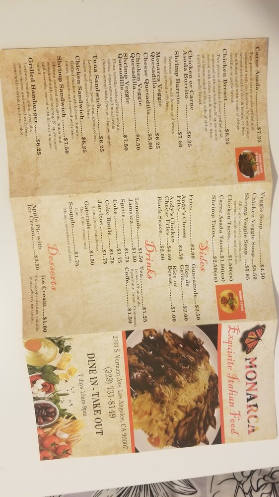 Welcome to Monarca Pasta & Grill, a hidden gem in Los Angeles that offers a delightful twist on traditional Italian cuisine with a Mexican flair. Located at 2703 S Vermont Ave, this cozy, family-owned eatery captures the essence of homestyle cooking, providing dishes that are consistently delicious and affordable.